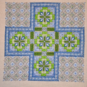 Zacznijmy od tego, że oczywiście zapomniałam o środkowym kwadracie w lutym. Potem obejrzałam inne prace na blogu i się okazało, że nie tylko ja się dałam na to nabrać - kilka prac w prezentacjach lutowych nie miało zrobionego środka, który automagicznie w marcu już był. Oczywiście zorientowałam się, kiedy połowa prac marcowych była wykonana (potrójne krzyżyki), ale jakoś wszystko dało się poupychać.