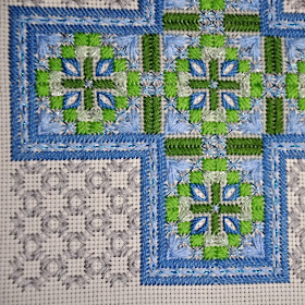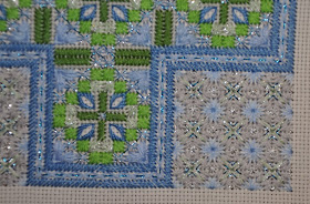 Też niemała praca, ale pracy o wiele mniej - bo tło nie jest zapełnione w całości. Ciekawe, ile zdążę wykonać przed godziną 0 :). Gotowy rozmiar to 30x40, więc bez szaleństw, ale chwilę zajmie.