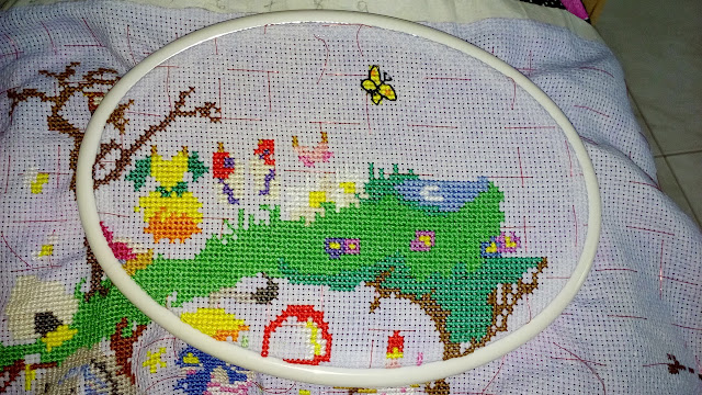 Wyszywanie maja to była poezja. I nieskromnie przyznam, jakież to piękne wyszło. Ale fotkę mam jedną, na dodatek trochę nieostrą, nie wiem dlaczego nie zrobiłam więcej. A jako, że zawsze trochę czasu minie między zrobieniem kawałka, zrobieniem fotek, a ich przejrzeniem - to na poprawę było za późno, bo się robił kawałek czerwcowy już ;)